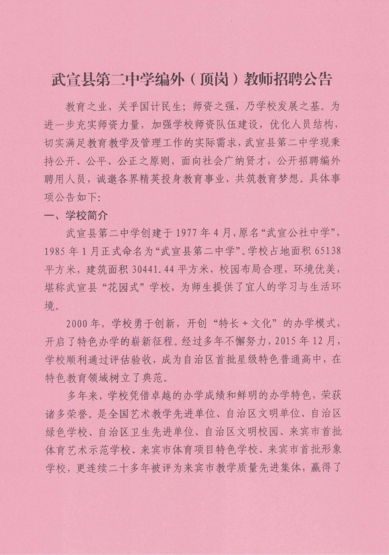 原标题:武宣县第二中学编外(顶岗)教师招聘公告