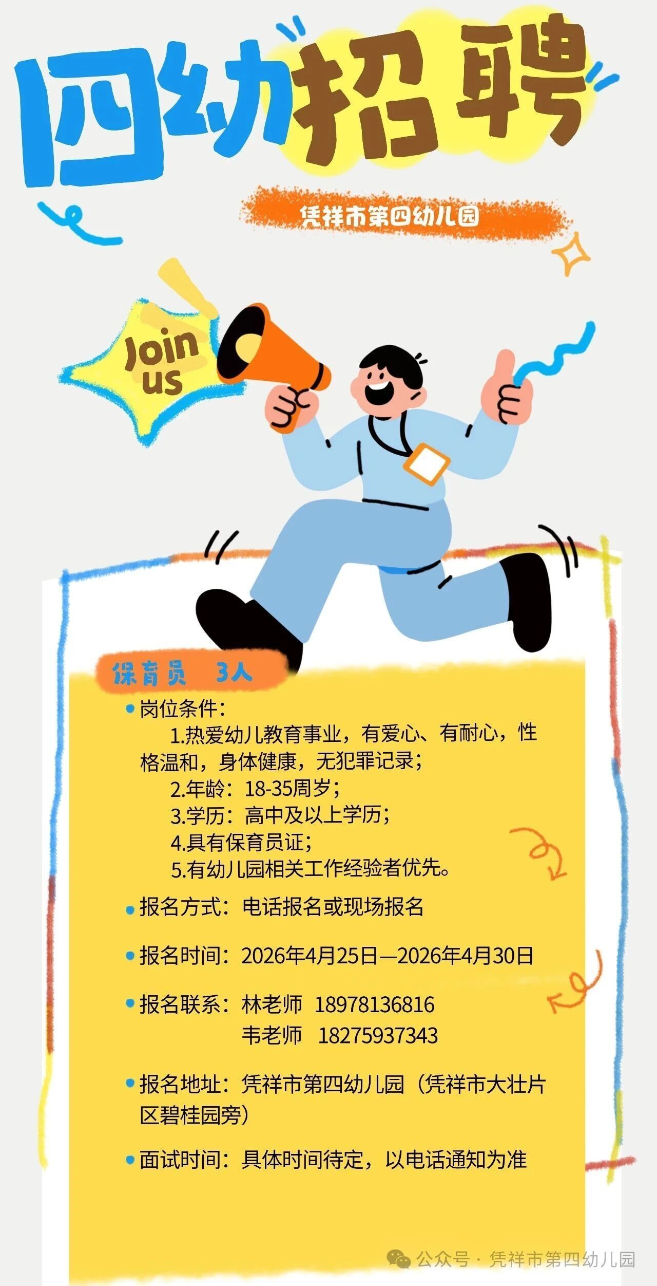 2026年崇左凭祥市第四幼儿园招聘保育员3人
